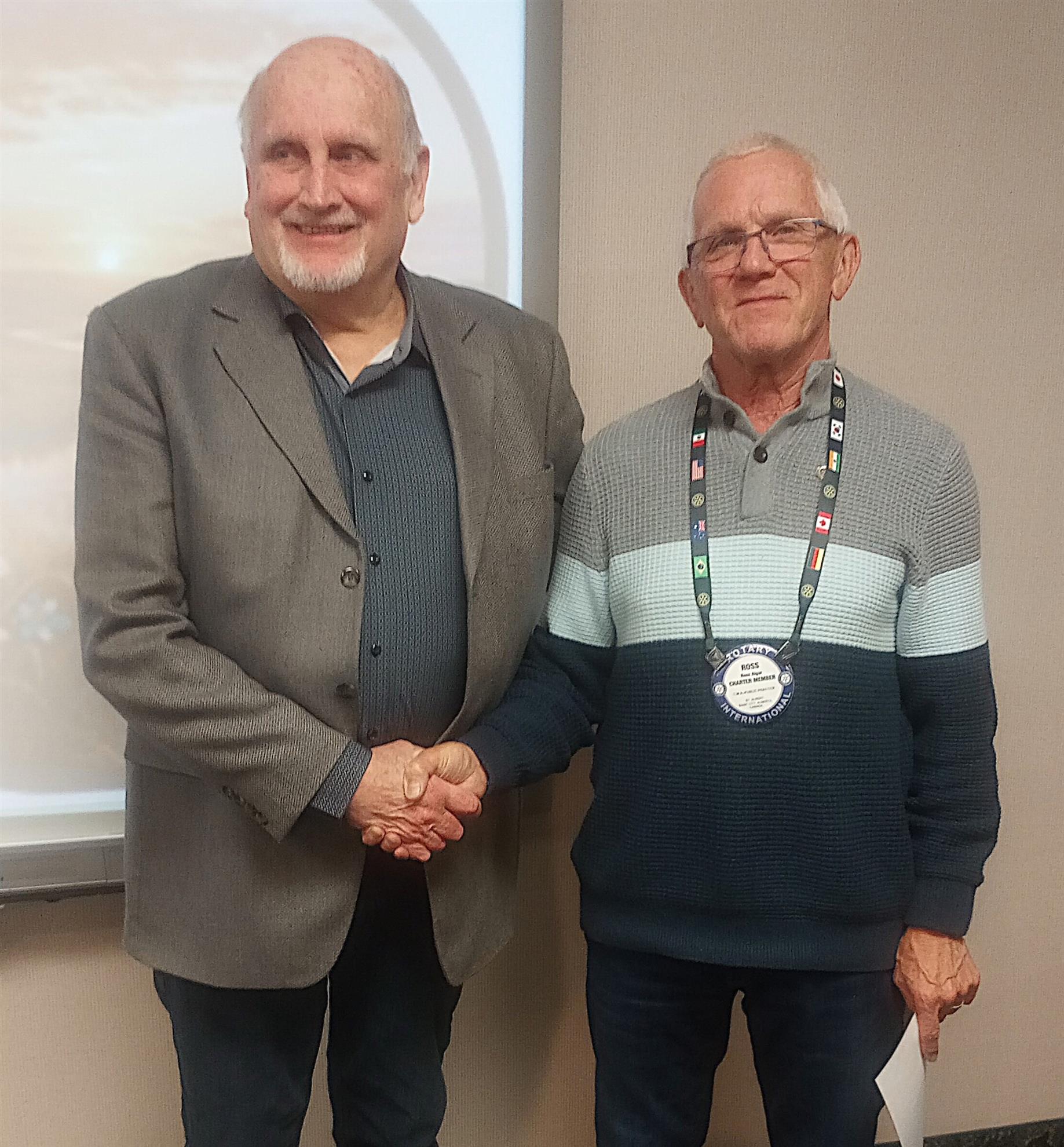 At our meeting yesterday we welcomed into the Rotary family our newest member, Wilf Day. Welcome to Rotary, Wilf. Shown with Wilf (left) is his sponsor, club treasurer and pressident-elect Ross Algar.